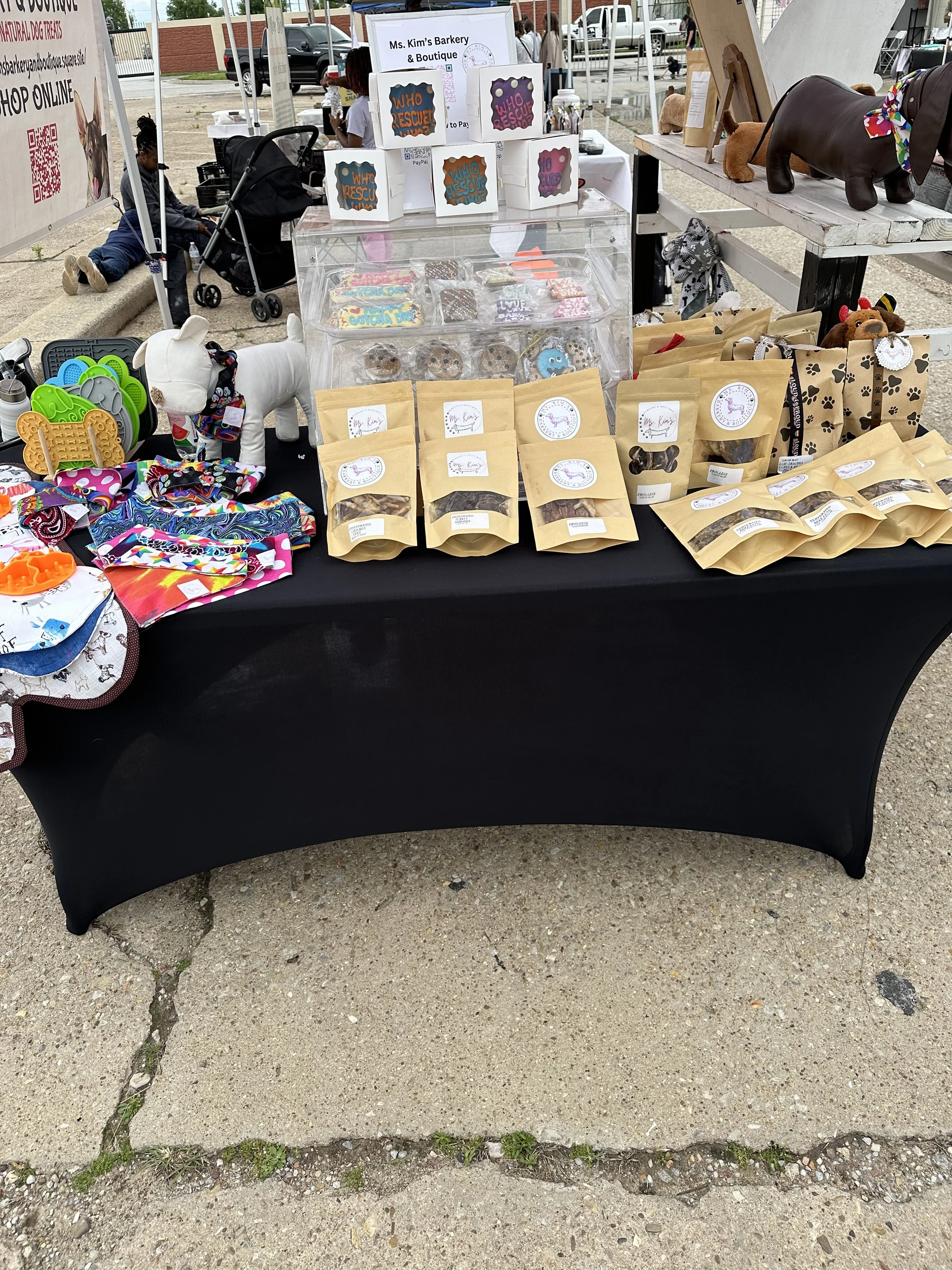 At her booth, you’ll find an array of delightful dog products including baked treats, chews, peanut butter, premix cakes, bandanas, pupcakes, bagged treats, sample treats, pillows, lick mats, and even dog-themed coffee cups and pillows.