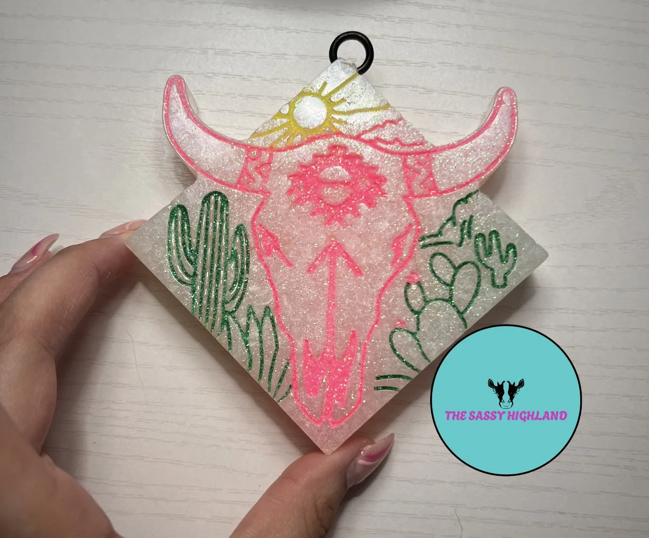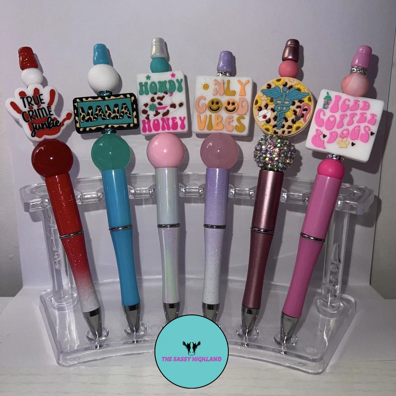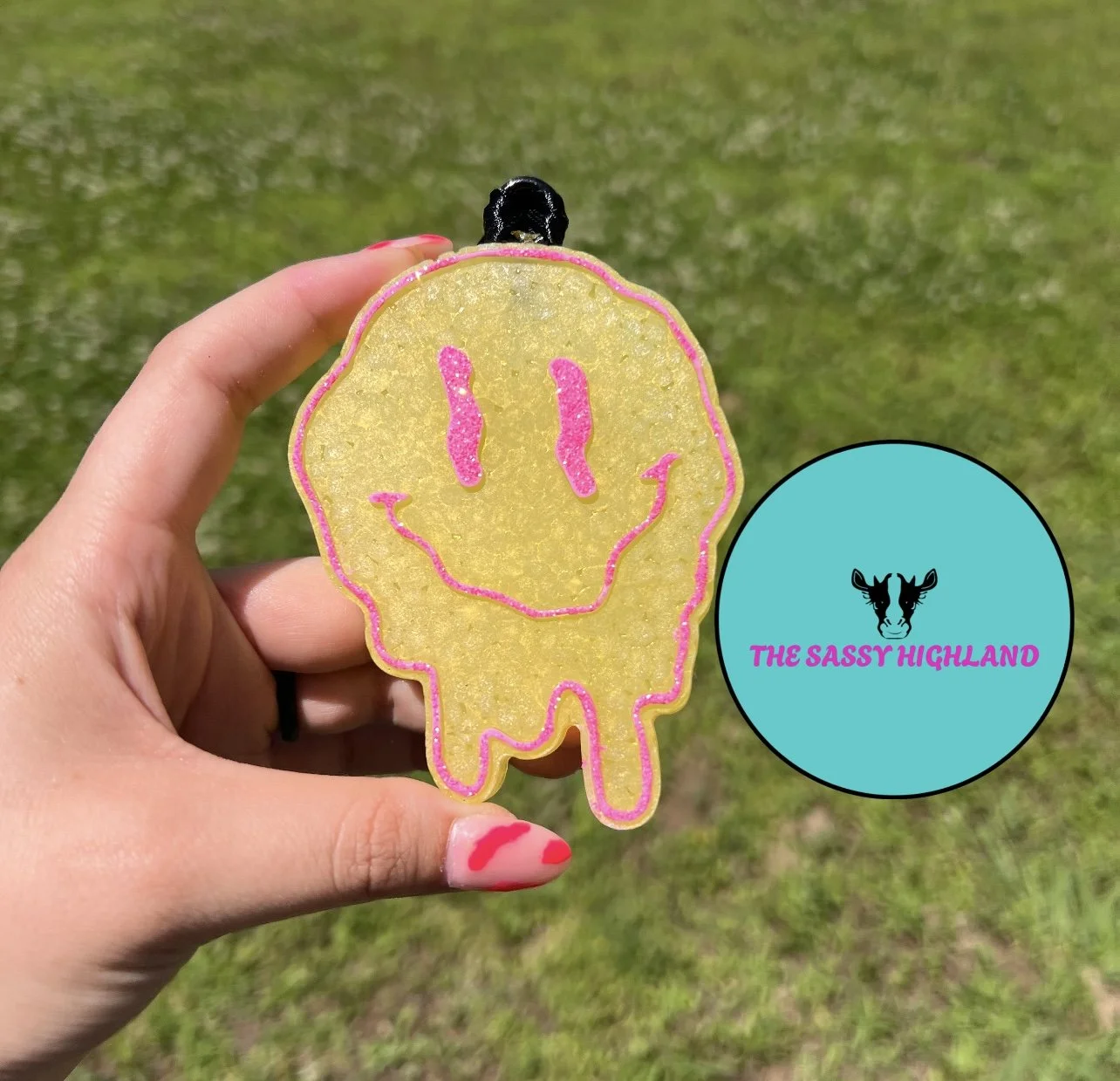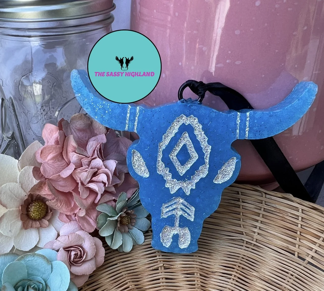 The Sassy Highland offers a variety of products including car freshies, freshie hangers, beaded pens, beaded badge reels, shirts, hoodies, and more. Her car freshies are particularly popular, known for their long-lasting and refreshing scents, with a favorite being similar to Gain laundry detergent.